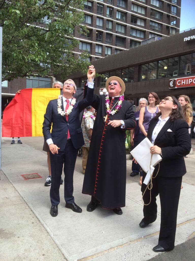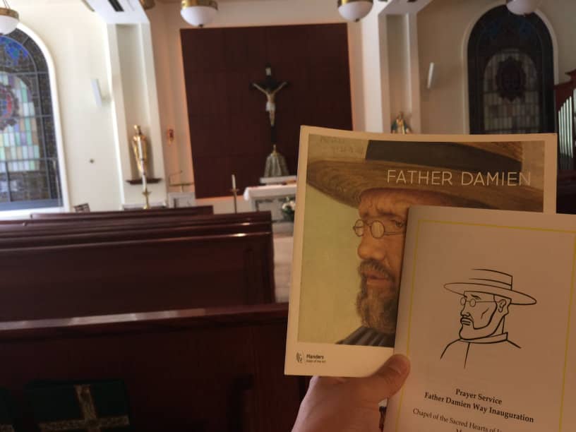 My musical adventures frequently take me to interesting places and the street naming celebration of “Father Damien Way” in New York City was no exception. Father Damien, the 19th-century Roman Catholic Priest from Belgium, is recognized for his work with Hansen’s disease patients in Kalaupapa on Molokai. If you do not believe in miracles, I found a free parking spot on the street just three blocks from the venue! Free parking in Manhattan has to be a divine intervention.